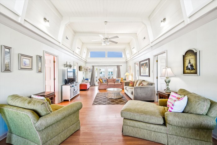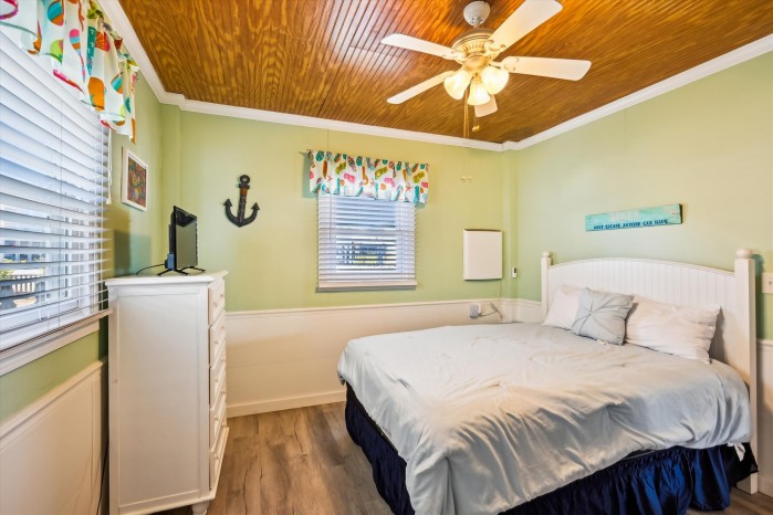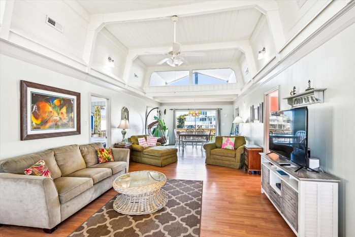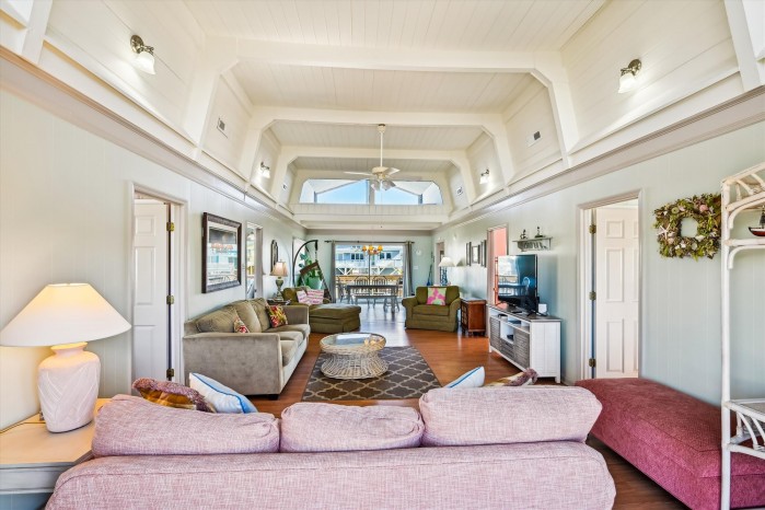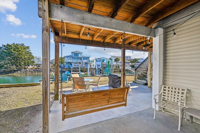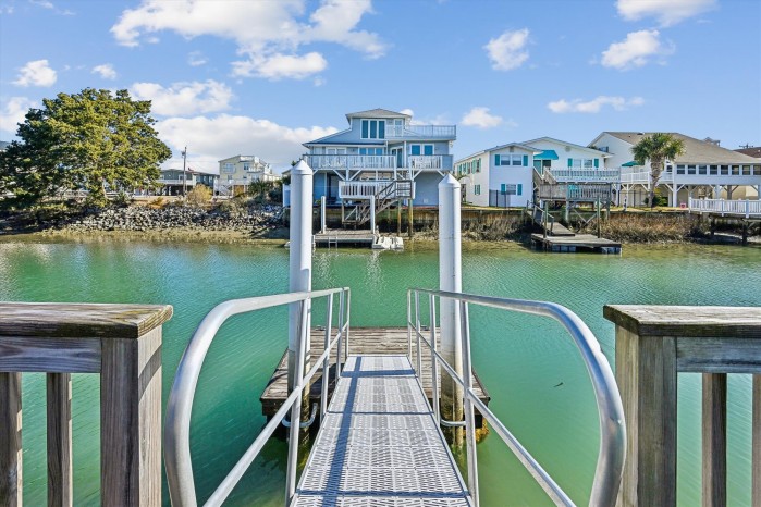 Get ready for the ultimate beach escape at A Hellya Getaway, located on the peaceful channel in Cherry Grove! This spacious beach house offers 6 bedrooms, 3 full baths, and a separate lower level for extra privacy. Perfect for groups, the lower level includes a cozy living area, kitchen, two bedrooms, and one full bath. Step outside to the patio for stunning views of the channel or head upstairs to the main level, where you'll find a bright living area, fully equipped kitchen, and 4 more bedrooms and 2 full baths. Enjoy the large deck overlooking the water and relax on the private floating dock.