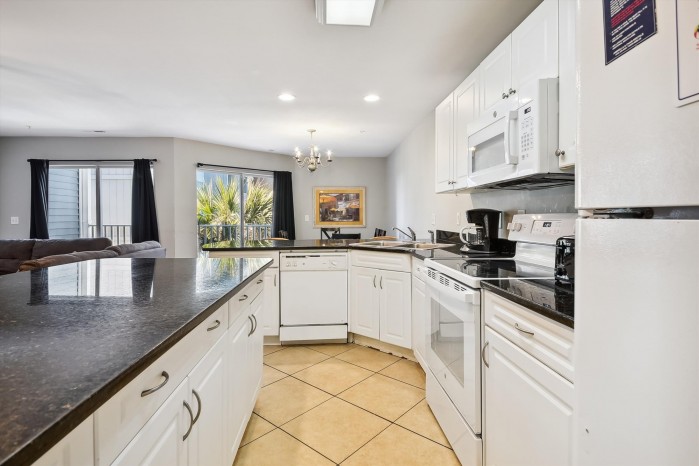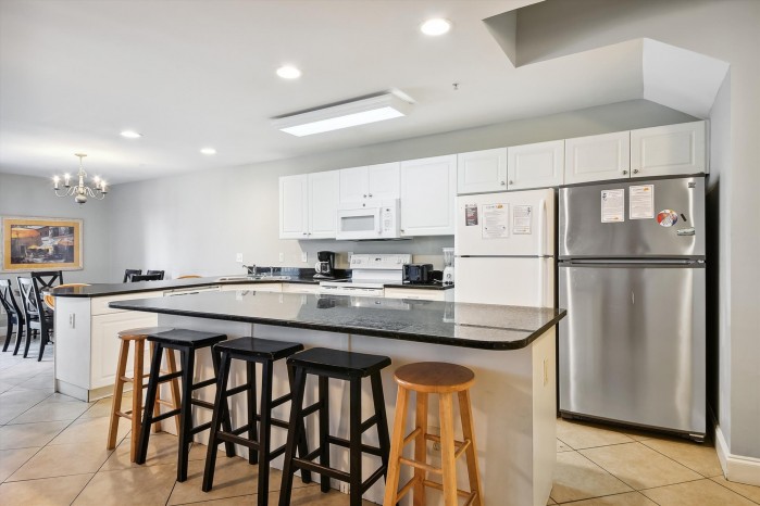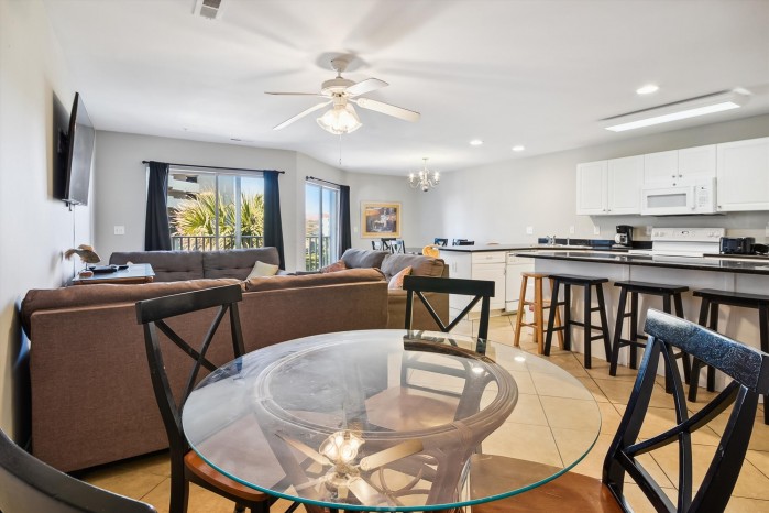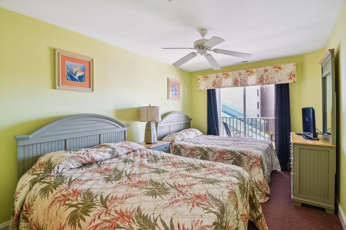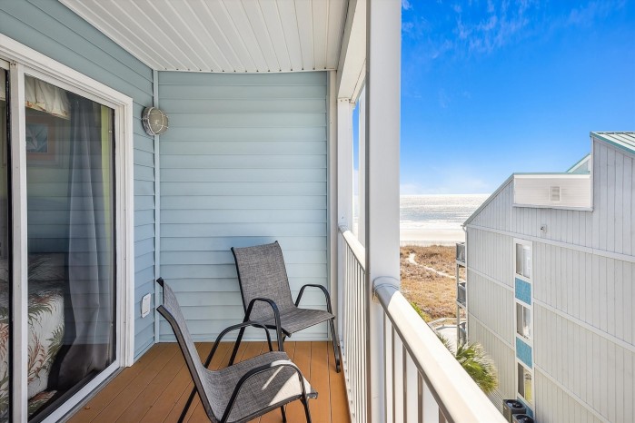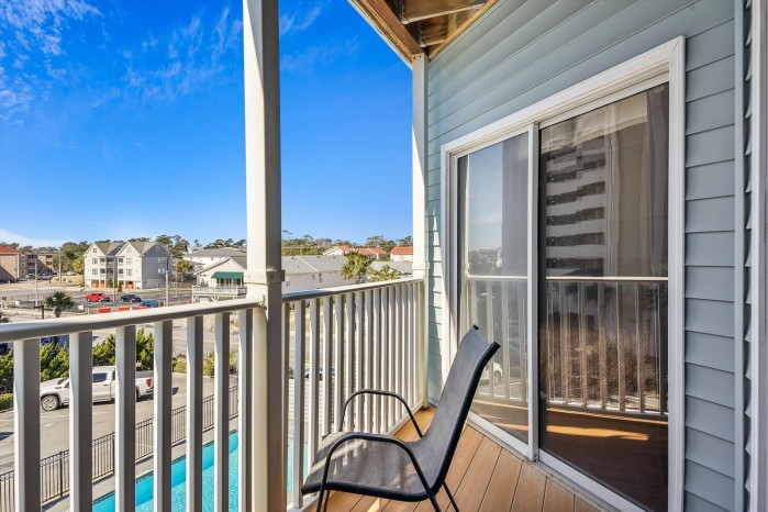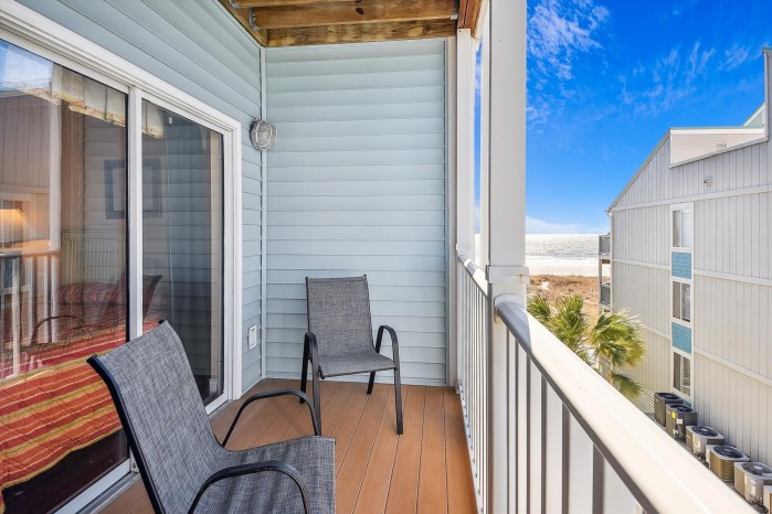 Ambassador Villas 203 is big in size and big in fun. There are three stories in this North Myrtle Beach sideview vacation rental, and each floor has a private balcony. The large living room and kitchen are ready to accommodate your whole crowd. The kitchen has plenty of food prep space and a dining area. Everyone can watch his or her favorite show on one of the flatscreen TVs and DVD players. There is WIFI, too! Wet bathing suits will not be a problem with the washer and dryer in Ambassador Villas 203.