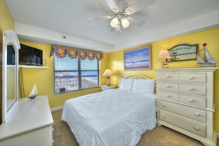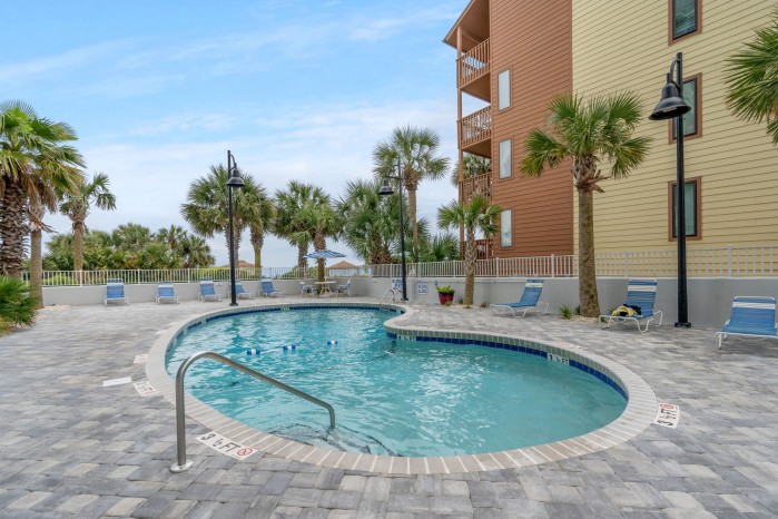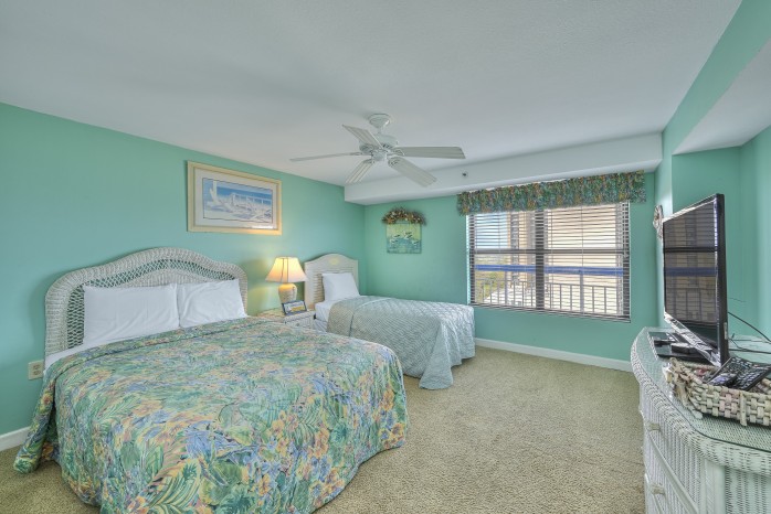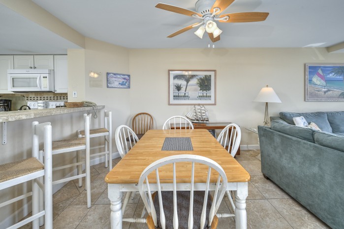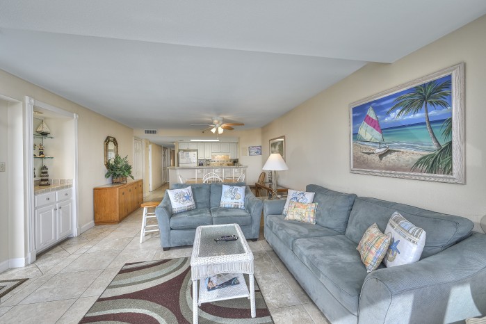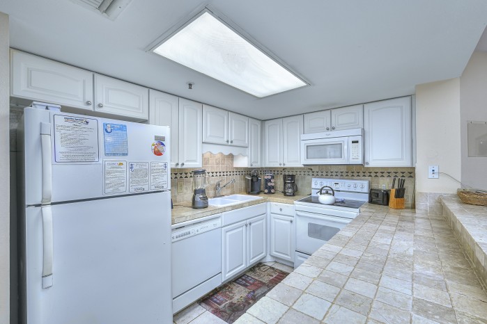 The condo features tile flooring in the main areas, cozy carpeted bedrooms, and flat screen TVs in every room. The open living space is perfect for family time, and the fully equipped kitchen makes mealtime easy. You’ll also have a washer and dryer in the unit for added convenience.