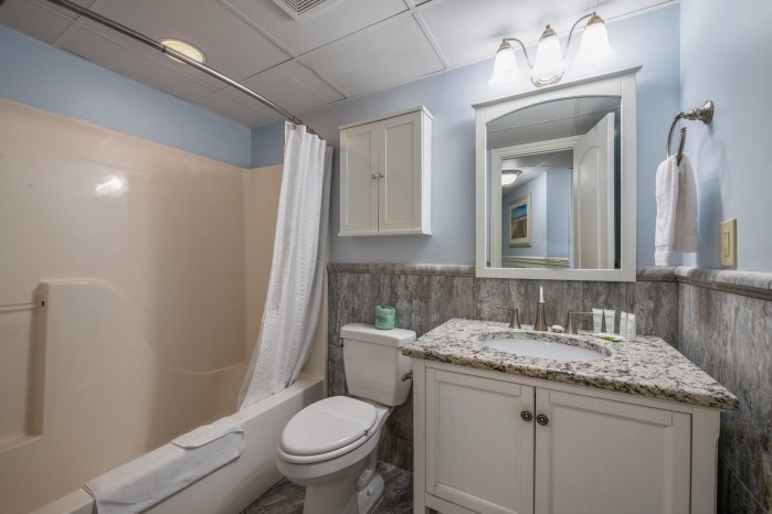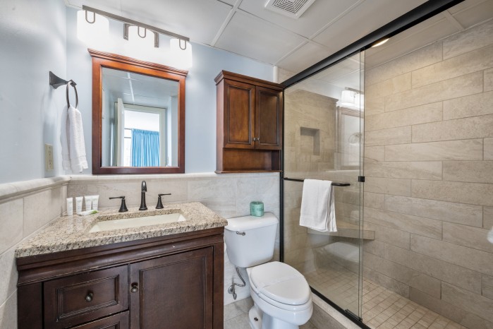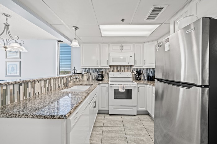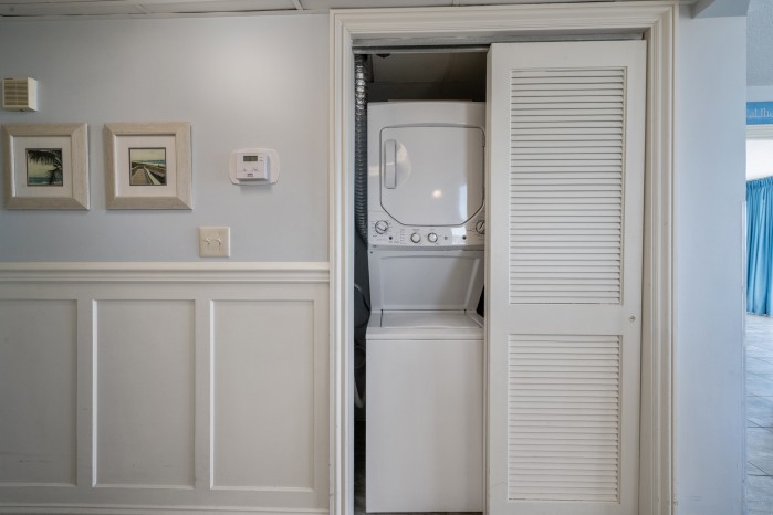 On top of the beautiful ocean views from the master bedroom and balcony, you’ll also be treated to the rental’s indoor and outdoor pools and hot tubs. The rental also includes its own washer and dryer for your convenience.