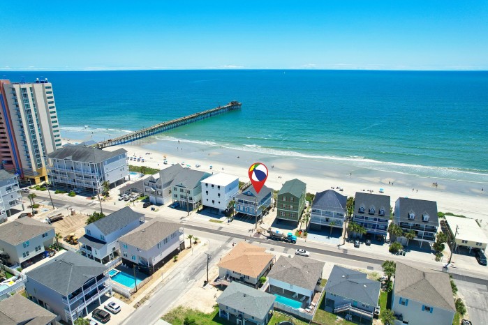 For an elegant North Myrtle Beach vacation, reserve Surfs Up for your large family. This oceanfront beach house offers a fabulous ocean view from the two covered balconies. The large great room and all six bedrooms feature plush furnishings and coastal decor. Situated in the Cherry Grove section of the Grand Strand, Surfs Up is conveniently located near many popular family attractions and championship golf, perfect for your beach vacation.