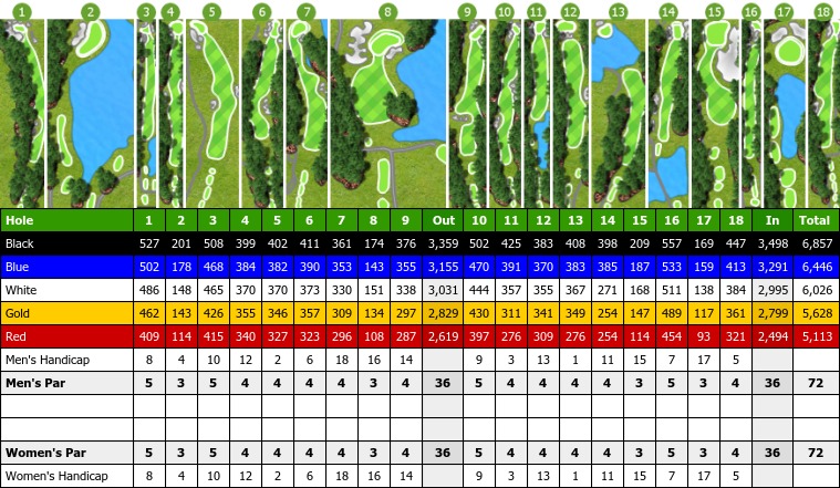 The golf course features beautiful tree-lined fairways, scenic lakes, well-placed bunkers, lush Tifton Bermuda greens, and distinctive contouring. It will challenge golfers of every ability and is sure to provide fun for all golfers.